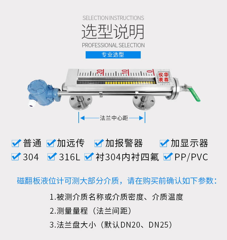 磁翻板液位計(jì)是我公司研發(fā)人員對(duì)國(guó)外液位計(jì)深入研究開發(fā)的先進(jìn)產(chǎn)品。作為物位儀表的專業(yè)生產(chǎn)廠商,我公司努力提高液位測(cè)量技術(shù),相對(duì)于傳統(tǒng)的液位測(cè)量方式,該產(chǎn)品按原化學(xué)工業(yè)部頒布的磁性液位計(jì)標(biāo)準(zhǔn)研制生產(chǎn),具有可靠的安全性,它彌補(bǔ)了玻璃板(管)液位計(jì)指示不清晰,易破碎的不足,不受高、低溫度劇變的影響,不需多組液位計(jì)的組合。具有防爆,防腐,耐高壓,耐高溫等特點(diǎn)。它比傳統(tǒng)的玻璃管,板式液位計(jì)具有更高的可靠性、安全性、先進(jìn)性、實(shí)用性。