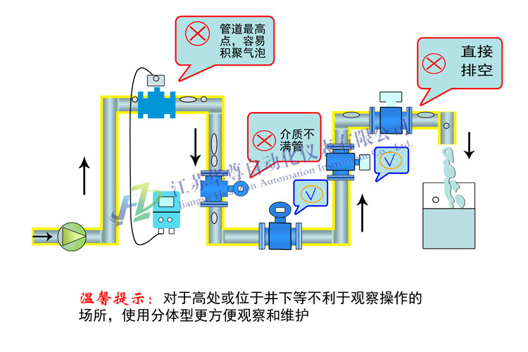 2.1安裝位置必須保證管道內(nèi)始終充滿被測液體。